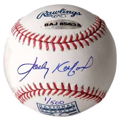 - Autographed Sandy Koufax baseball with official Hall of Fame logo- Commemorates Koufax's 3 NL Cy Young Awards and 4 no-hitters